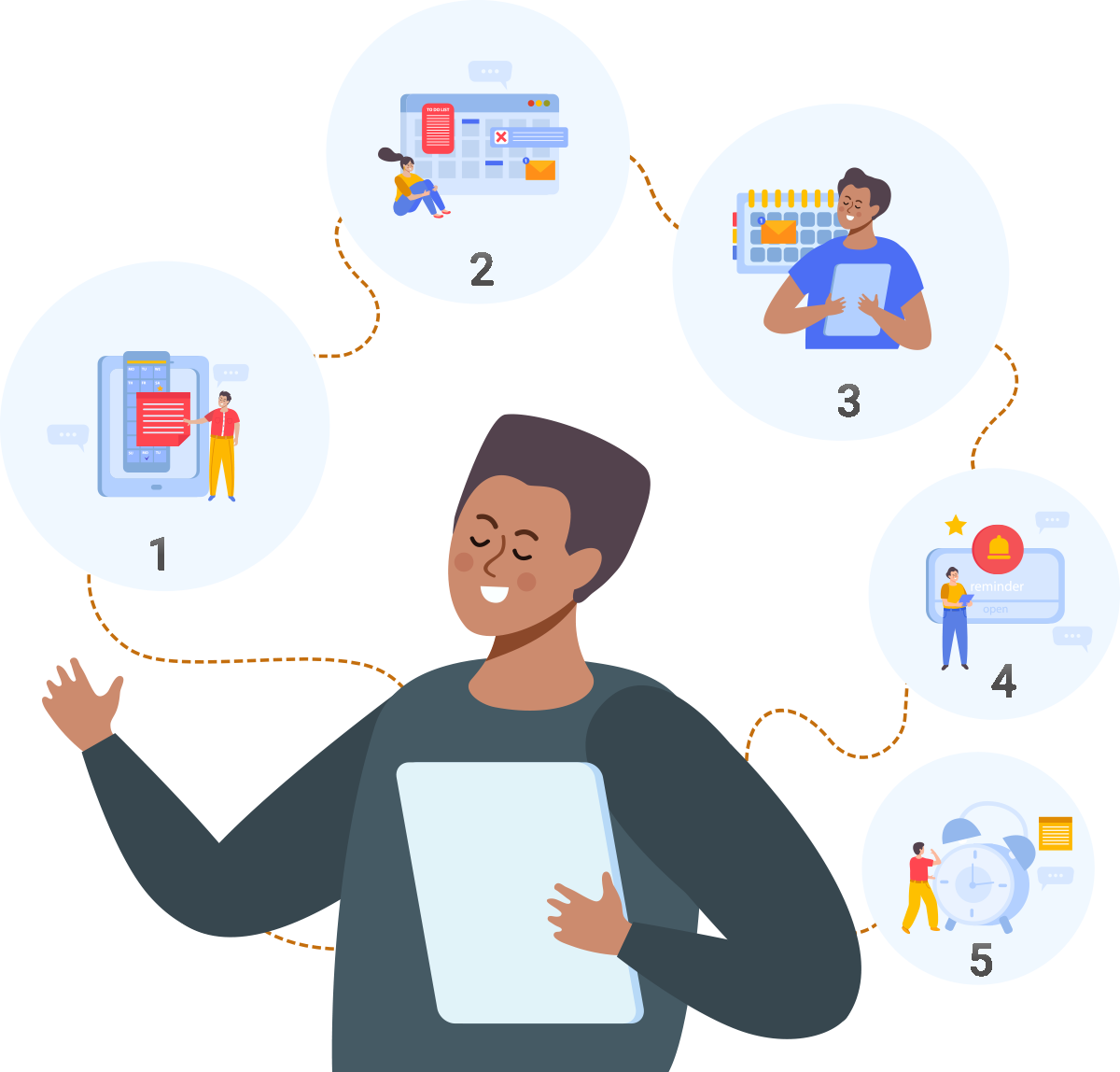 Mit unserem auf Sie abgestimmten ErwerbsMigrationsProzess (EMP) finden Sie Ihre Fachkraft in fünf zeitlich gut planbaren Abschnitten ‒ von der Kandidatensuche bis zum Onboarding.